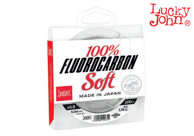 Όπως γνωρίζουμε η Lucky John είναι μία ολοκληρωμένη εταιρεία, έτσι από την συλλογή της δεν θα υπήρχε περίπτωση να λείπει και η ποικιλία από Fluorocarbon πετονιές. Σκοπός δημιουργίας της είναι για την χρήση παράμαλλου στην τεχνική του spinning κατά κύριο λόγο ή και σε οποιαδήποτε άλλη τεχνική χρειαστεί. Με την χρήση του πετυχαίνουμε την διακριτική παρουσία του τεχνητού μας δολώματος αφού είναι αόρατη μέσα στο νερό. Η συγκεκριμένη είναι μαλακού τύπου, όπως αναγράφεται και στην συσκευασία άλλωστε, "SOFT". Έχει την ιδιότητα να βυθίζεται πολύ γρήγορα μιας κι έχει ειδικό βάρος 1,78gr/cm3. Χαρακτηρίζεται από την ποιότητα της αφού έχει κατασκευαστεί σε εξειδικευμένο εργοστάσιο στην ΙΑΠΩΝΙΑ.