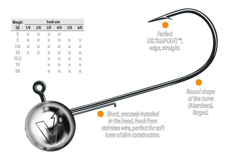 - Διατίθεται σε διάφορα νούμερα αγκιστριών από 1/0 εώς 6/0 και σε 3 εώς 20γρ βάρος (Συμβουλευτείτε τον πίνακα).