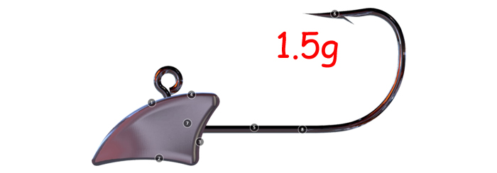 Το αγκίστρι είναι χημικά ακονισμένο, με αντιδριαβρωτική επίχρυση επίστρωση και έχει διάμετρο σύρματος 0.51mm στα μικρά μεγέθη μεχρι 1.5g και 5 τμχ στην συσκευασία. Ενώ στα μεγαλύτερα 0.60mm και 4 τεμάχια στην συσκευασία. Ο κρίκος πρόσδεσης με την παραμάνα μας βρίσκεται σε γωνία 10° προς τα πίσω από το κέντρο του Jighead και έχει μελετηθεί έτσι ώστε να καρφώνει άμεσα ακόμα και με την παραμικρή κόντρα εξαιτίας του μοχλού που κάνει με την τάση που του ασκούμε εμείς κατά την ανάκτηση. Το αρπάδι του αγκιστριού έχει μια αμβλεία γωνία προς τα επάνω και δεν είναι παράλληλο με τον κορμό για να μπορεί να καρφώσει λίγο πιο εσωτερικά στο ευαίσθητο στόμα των κοκκαλιών στην περιοχή του ουρανίσκου και όχι στα χείλη που όπως γνωρίζουμε όλοι σχίζονται πολύ εύκολα με αποτέλεσμα τα πολλά χαμένα ψάρια όπως με άλλα jighead.