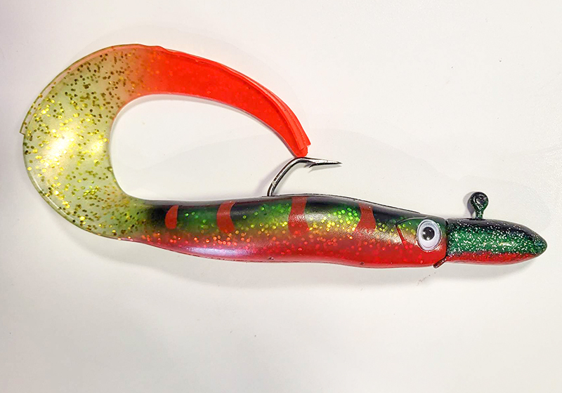 Το αγκίστρι της είναι VMC 5150BN 10/0 και στα 60γρ 6/0, εξαιρετικά αιχμηρό και δυνατό κατάλληλο για μεγάλα θηράματα!! Επίσης διαθέτει δεύτερο κρίκο για την τοποθέτηση "κλέφτη" αν επιθυμούμε και ειδικό άγκιστρο συγκράτησης της σιλικόνης.