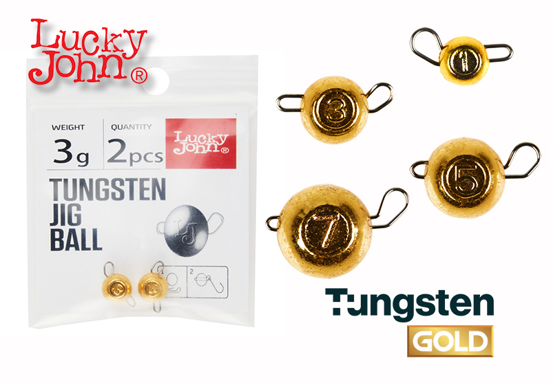 Ένα από τα πιο χρήσιμα εξαρτήματα στην τεχνική του Bottom Fishing δεν είναι άλλο από την Cheburashka. Η Lucky John έρχεται να καλύψει τις ανάγκες μας πάνω σε αυτό το θέμα με ένα άκρως ποιοτικό προϊόν που είναι κατασκευασμένο από υλικό TUNGSTEN στην μακρινή Ιαπωνία. Το υλικό Tungsten, στα ελληνικά βολφράμιο, έχει μεγαλύτερο ειδικό βάρος από το απλό μολύβι. Αυτό έχει ως αποτέλεσμα να αποδίδει περισσότερο βάρος σε μικρότερο όγκο. Με αυτό πετυχαίνουμε γρηγορότερο κατεύασμα στον βυθό αλλά και καλύτερη αεροδυναμικότητα, που μεταφράζεται σε μακρινότερες ρίψεις. Στην ουσία το TUNGSTEN Jig Ball της Lucky John πρόκειται για ένα Jighead σε σχήμα μπάλας στο οποίο το σύρμα είναι αποσπώμενο, δίνοντας μας έτσι την δυνατότητα να μπορούμε να προσαρμόσουμε οποιοδήποτε τύπο και μέγεθος αγκιστριού θελήσουμε. Είναι διαθέσιμο σε διαφορετικά βάρη που μπορούν να καλύψουν τόσο την τεχνική του LRF όσο και του Medium spinning. Οι νέες JigBall έχουν χρώμα ΧΡΥΣΟ!!