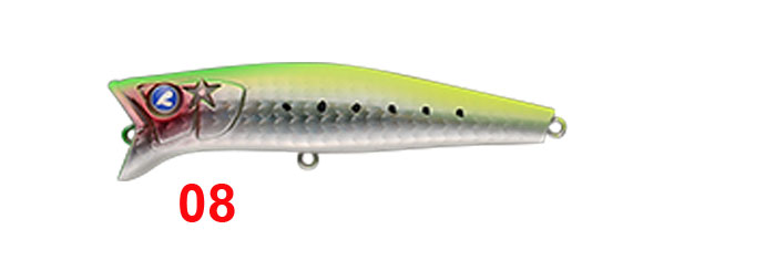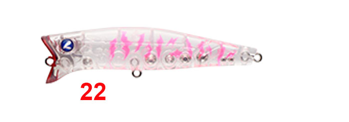 Το γεγονός ότι είτε με Popping είτε με απλή ανάκτηση το Gaboz μένει πάντα στην επιφάνεια της θάλασσας, σημαίνει πως σίγουρα δεν αφήνει ασυγκίνητα τα ψάρια στο πέρασμα του αφού δημιουργεί ελαφρύ κυματισμό και φυσαλίδες. Το μήκος του είναι 9 εκατοστά, έχει βάρος 11gr και είναι εφοδιασμένο με δύο σαλαγκιές τύπου ST-46 σε μέγεθος #6. Το χρωματολόγιο είναι πραγματικά τέτοιο που μπορεί να καλύψει ακόμη και τους πιο απαιτητικούς spinner, αφού αποτελείται από μοναδικούς χαρακτηριστικούς χρωματισμούς που αντιπροσωπεύουν το χαρακτήρα της BlueBlue.